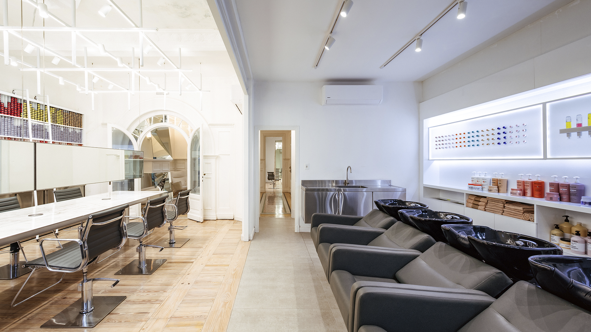 Pero la verdadera joya se encuentra en la planta alta, donde Nacho ha transformado una icónica casa Art Decó en el estudio de pelo más innovador de la ciudad. Con una estética que combina lo clásico y lo contemporáneo, este espacio se ha convertido en un santuario para aquellos que buscan algo más que un simple corte de cabello. Aquí, la creatividad y la técnica se fusionan para crear verdaderas obras de arte capilares.